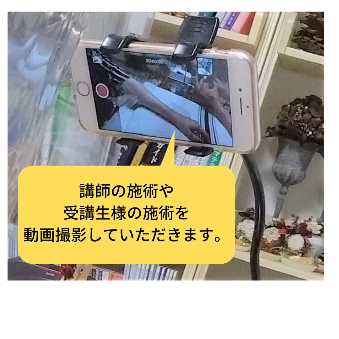 ・講師と受講生様の手技を動画撮影していただき、講座後も復習に活かしていただくことが出来ます。