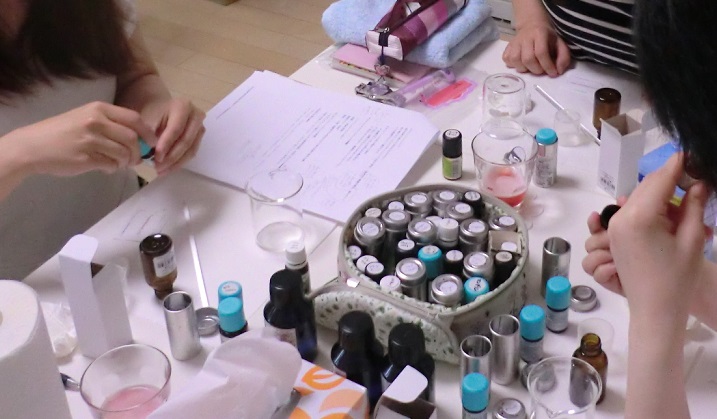 自宅練習用のトリートメントオイルを作り、お持ち帰り頂きます。