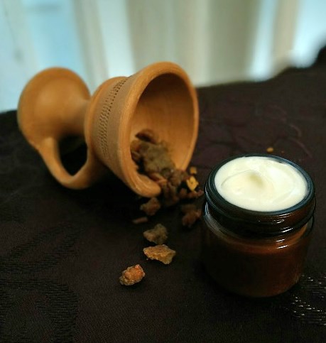 未精製のマカデミアナッツオイルとミルラとフランキンセンスのチンキを配合した、甘い香りのオリエンタルなクリームを作ります。