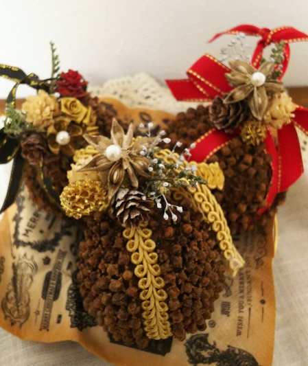 ポマンダーと一緒に飾ることができる、小さな木の実の花束もお作りいただきます