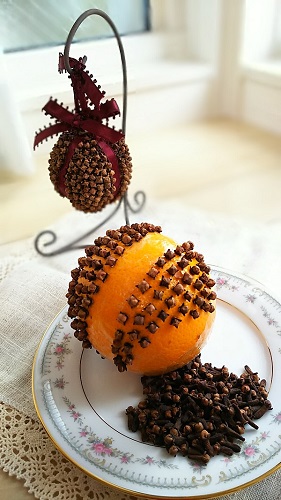 オレンジにクローブを挿して作るオレンジ・ポマンダーは、クリスマスの飾りとして、キッチンの虫除けに、魔除けとして、大活躍します。